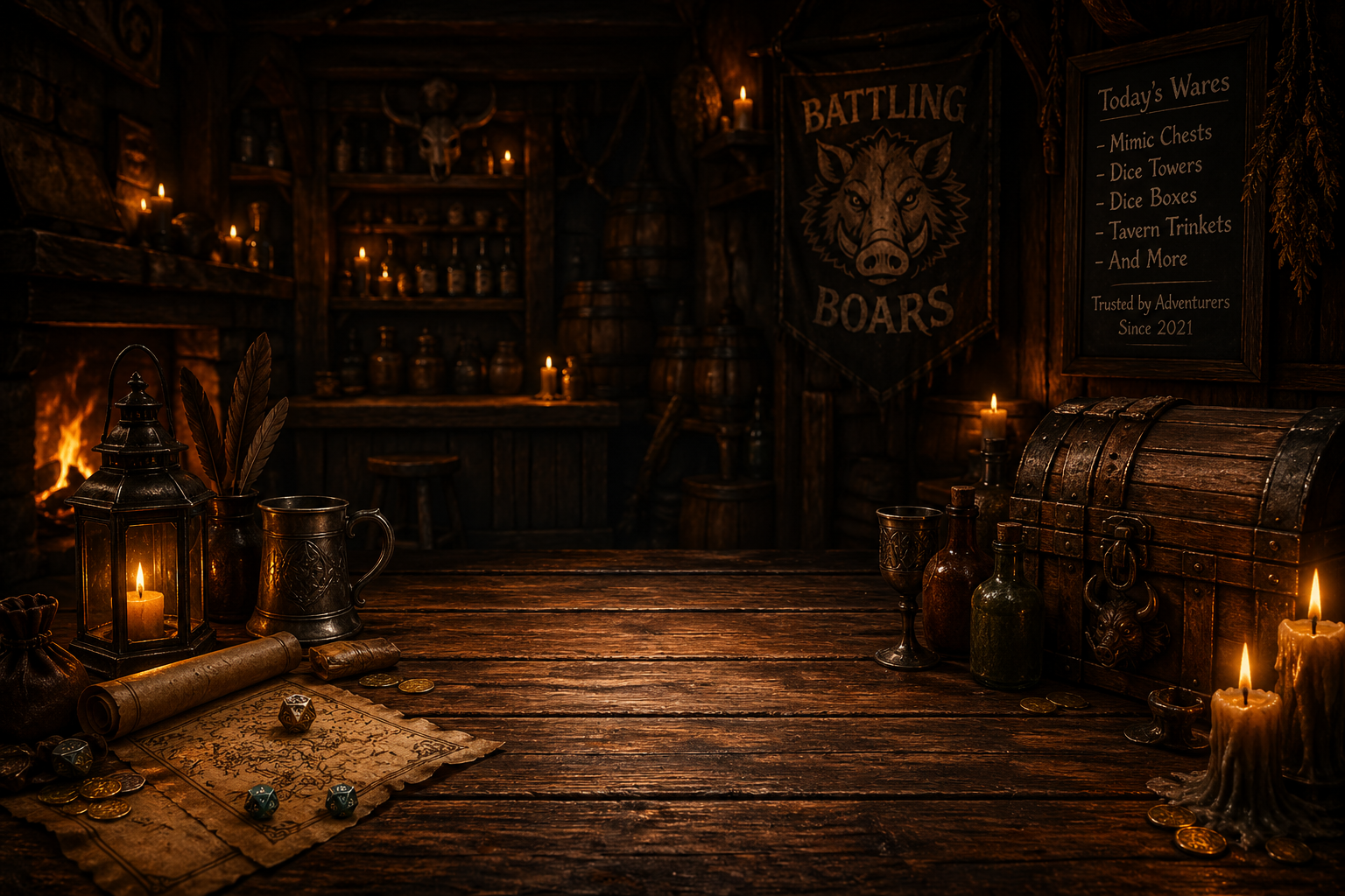 Handcrafted treasures, cursed curiosities, and mimic chests that may bite back.